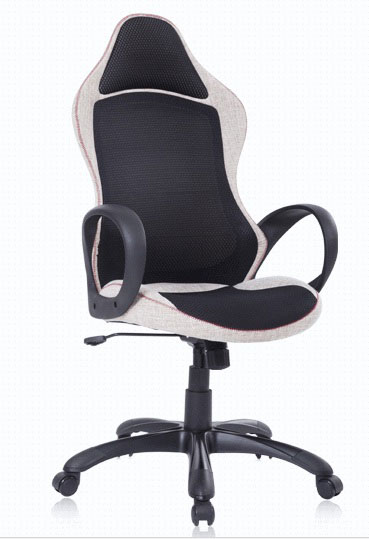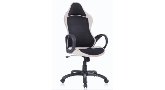 Silla de oficina color negro y blanco en tela diseño ergonómico y apoya brazos en pp.