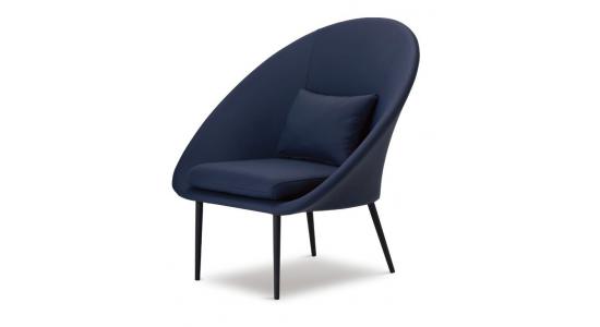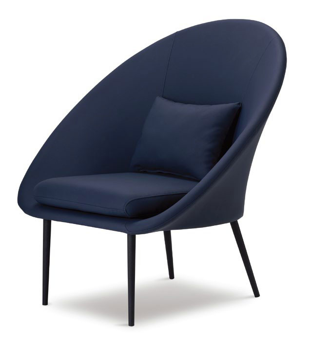Silla en cuero sintético azul estructura y patas en acero con acolchado en el asiento y un cojín de espaldar
