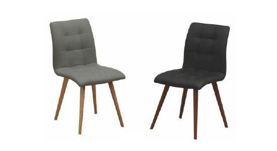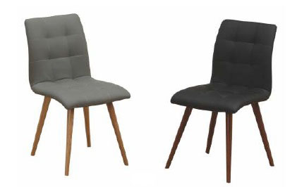 Silla en cuero sintético color gris o negro con patas de madera delgadas
