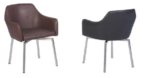 Silla en cuero sintético color negro y café con patas en metal delgadas