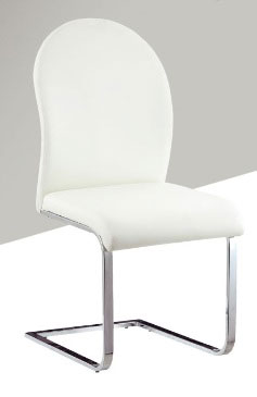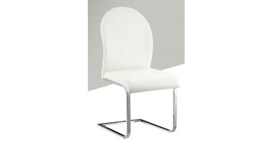 Silla en cuero sintético de color blanco espaldar en forma de ovalo con patas metálicas ideal para recepciones o eventos