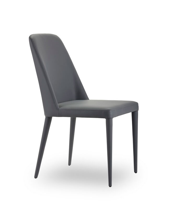 Silla en cuero sintético de color gris con marco de acero