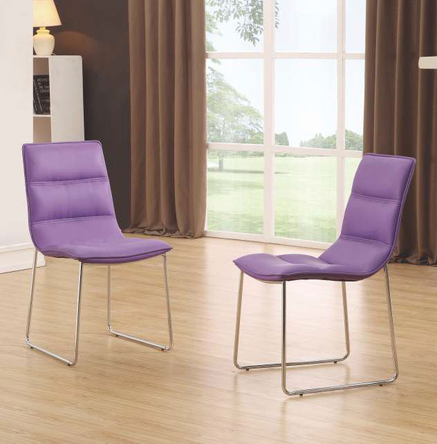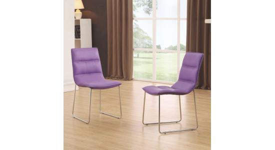 Inicio > Mobiliario > Silla En Cuero Sintetico de Color Morado Con Sus Patas de Metal Cromado Delgadas