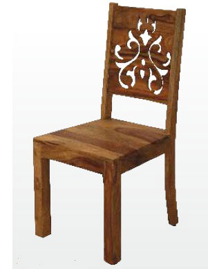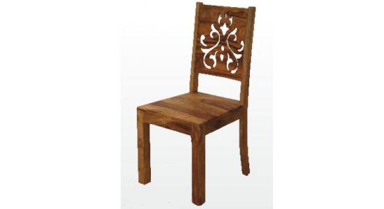 Silla en madera robusta entera plana en su asiento su espaldar tallado
