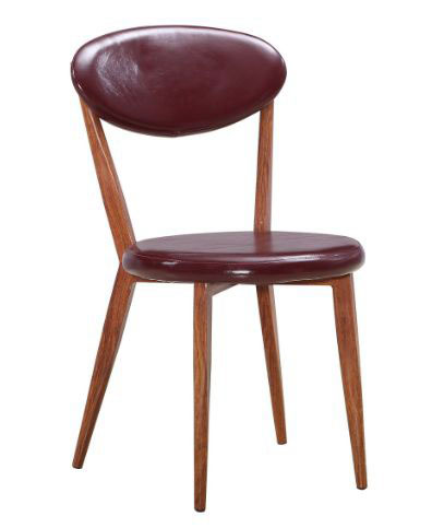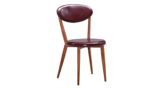 Silla hecha en madera solida con acolchado en cuero sintético color vinotinto