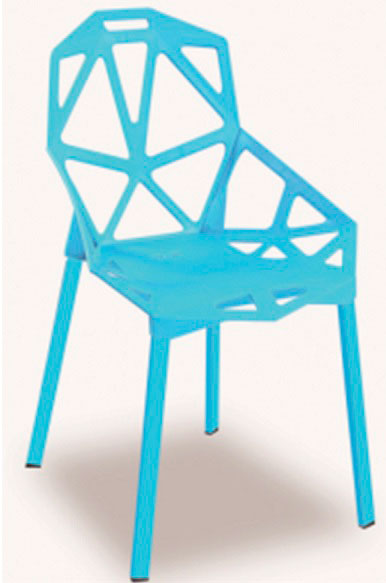Inicio > Mobiliario > Silla En Plastico Color Azul Claro Con Espaldar En Diseno de Reja Sus Patas Delgadas