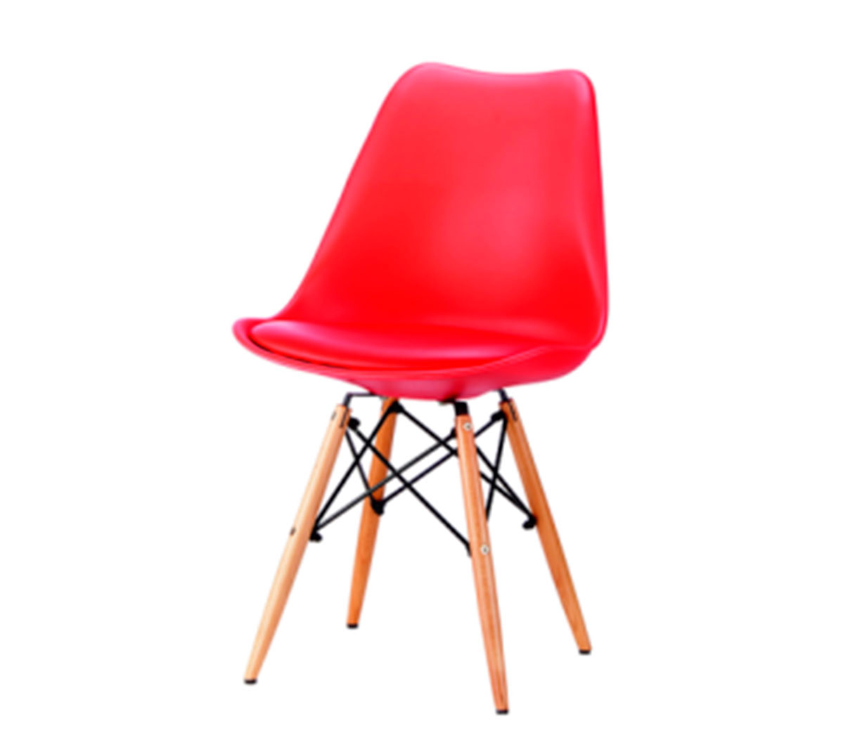 Inicio > Mobiliario > Silla En Plastico Con Cojin En El Asiento de Color Naranja Sus Patas En Madera Con Barras