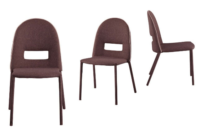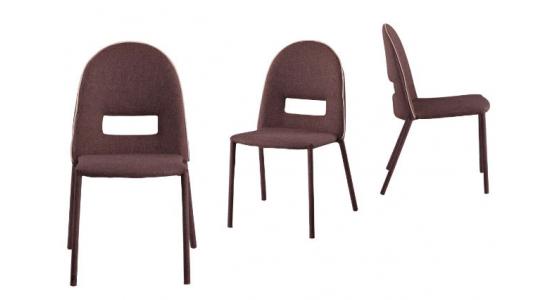 Silla en tela café sus patas en plástico diseño del espaldar en forma de arco