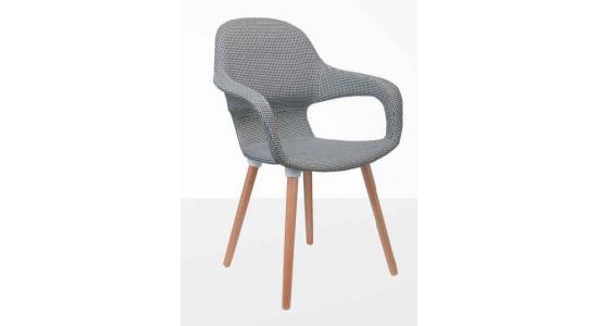 Inicio > Mobiliario > Silla En Tela Con Patas de Madera y Apoya Brazos Refuerzos En Plastico Con La Estructura