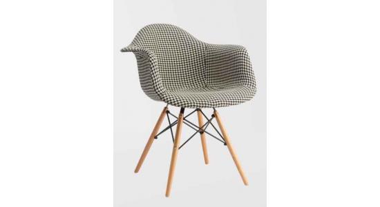 Inicio > Mobiliario > Silla Moderna En Tela Cuadros Gris y Negro Con Patas En Madera Tornillos y Barras
