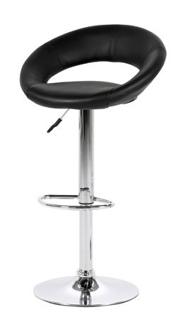 Silla para bar en base metálica forma circular en color negro con apoya pies