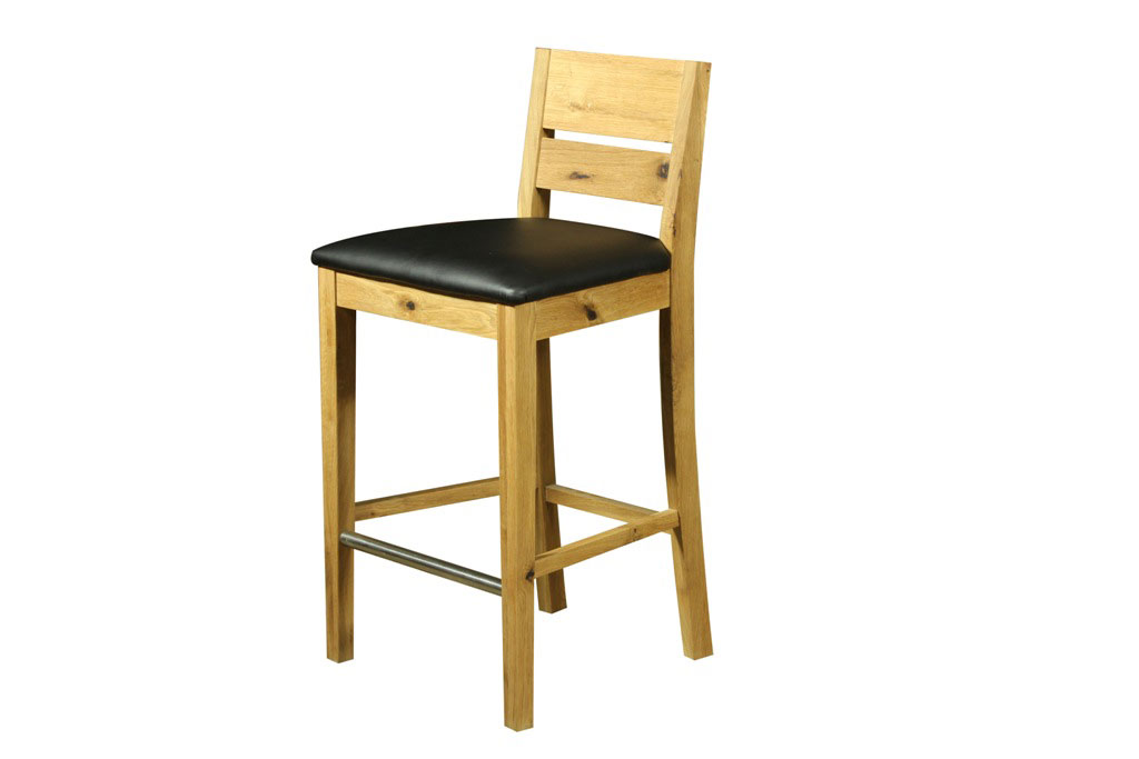 Silla para bar en madera robusta con asiento en cuero sintético
