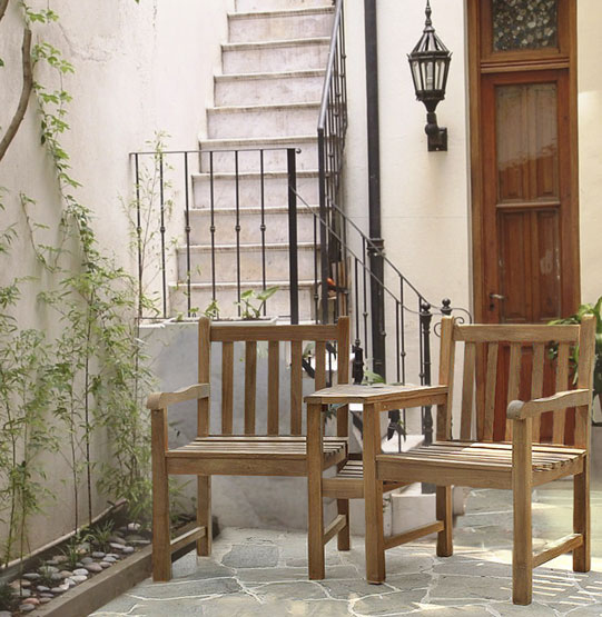 Silla para exteriores en madera unidas por brazo tipo mesa