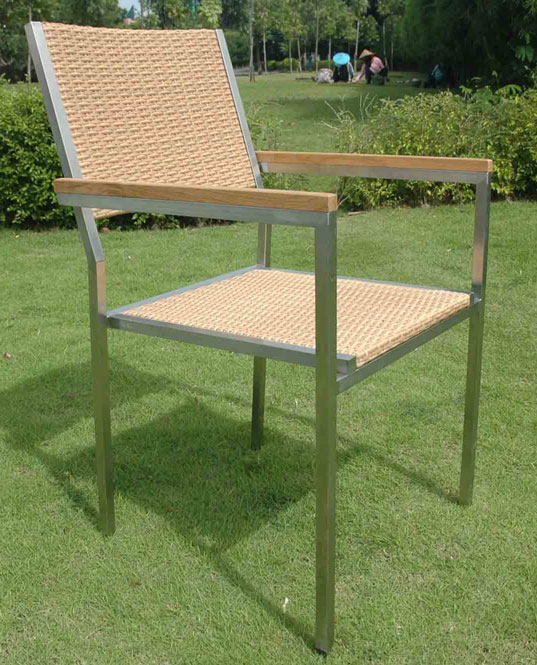 Inicio > Mobiliario > Silla Para Exteriores Fabricada En Aluminio y Fibra Sintetica Con Apoya Brazos En Madera