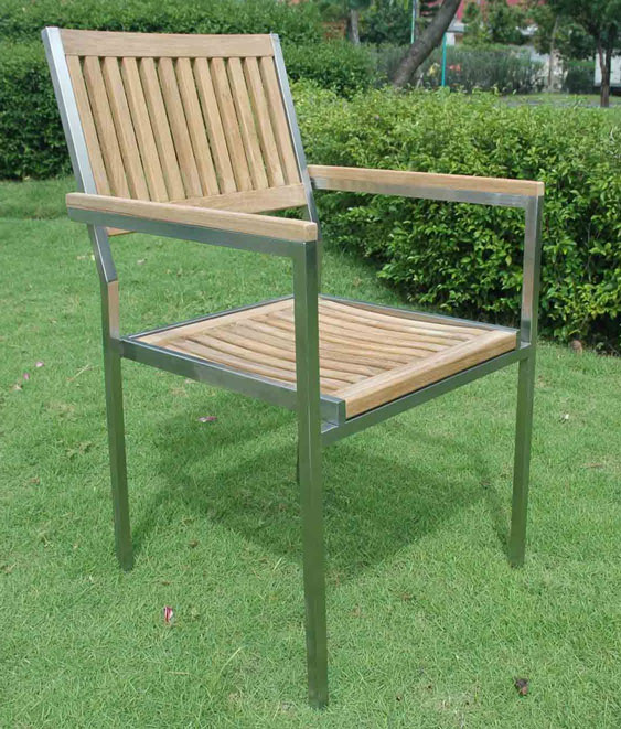 Silla para exteriores hecha en aluminio y madera solida con diseño en rejas