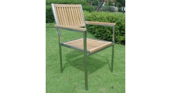 Silla fabricada en aluminio y madera solida para uso en exteriores barandales en madera espaldar y asiento en malla