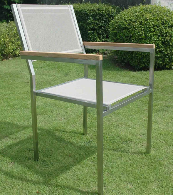 Inicio > Mobiliario > Silla Para Exteriores Hecha En Aluminio y Tela Color Blanca Con Apoya Brazos En Madera