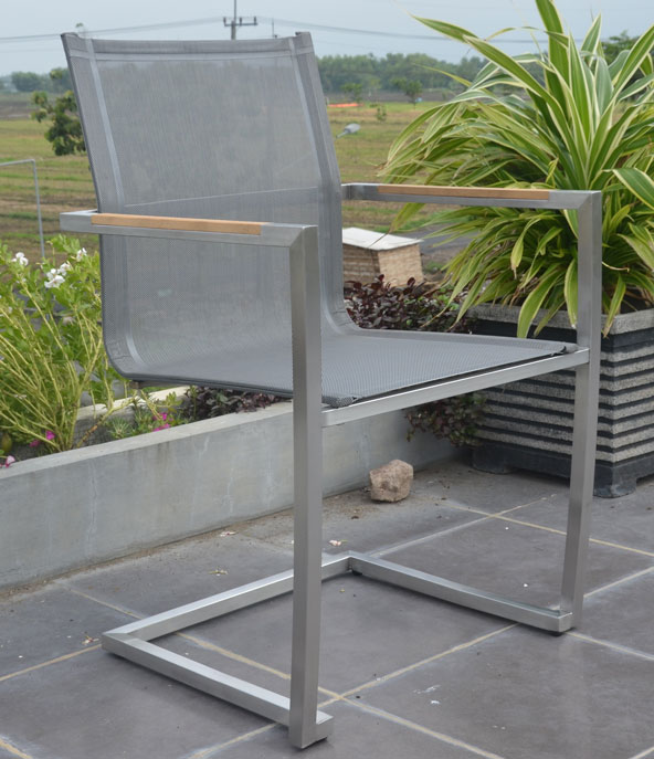Inicio > Mobiliario > Silla Para Exteriores Hecha En Aluminio y Tela Color Gris Con Un Diseno En Base de L