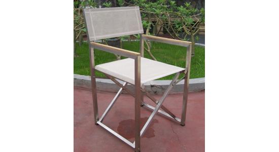 Inicio > Mobiliario > Silla Para Exteriores Plegable Hecha En Metal y Tela Resistente Con Barandales En Madera