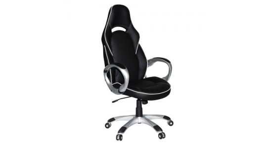 Inicio > Mobiliario > Silla Para Oficina Ejecutiva En Cuero Con Coderas de Plastico y Ruedas Apoya Brazos En Pp