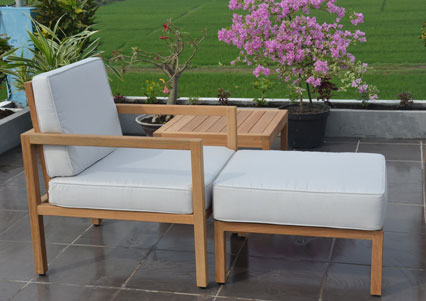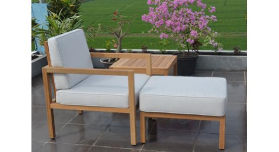 Inicio > Mobiliario > Sillon Descansador Para Exteriores Con Extension Hecho En Madera Con Dos Cojines Blancos