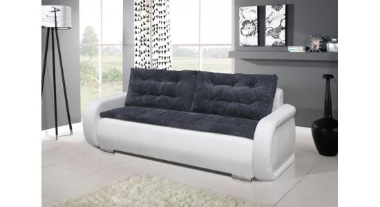 Sofá fabricado en cuero y gamuza color mezcla de blanco y negro, sus patas de metal color plata, que le dan un estilo clásico, ideal para uso en espacios , combinándolo con paredes de diferentes colores.