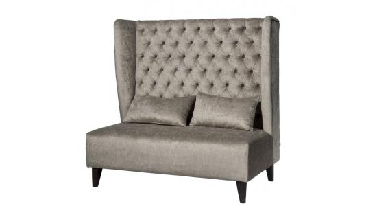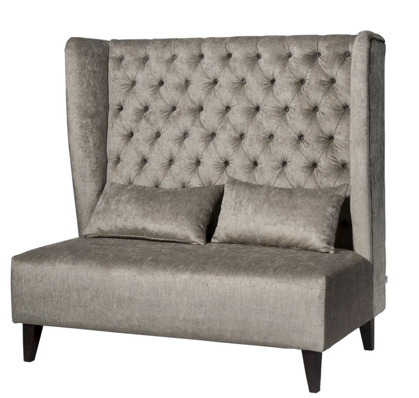 Sofá capitoné beige en tela con patas macizas color negro para esos espacios con memoria.