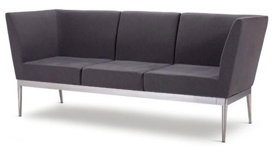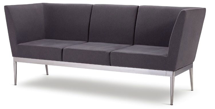 Sofá en base de metal patas delgadas para tres puestos en tela gris