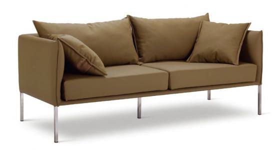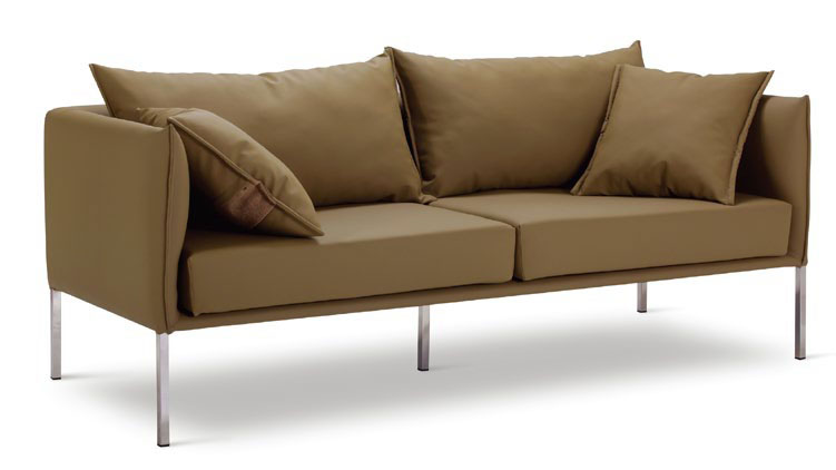 Inicio > Mobiliario > Sofa En Base Metalica Sus Patas de Metal Delgadas Hecho En Tela Color Cafe Claro