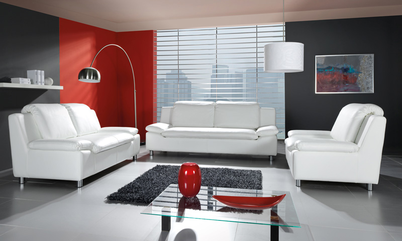 Sofá fabricado en cuero color blanco, sus patas de metal, y diseño dinámico le dan un estilo fresco, ideal para uso en espacios , combinándolo con paredes de diferentes colores.