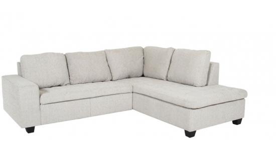Sofá en l lino blanco patas en madera con diseño redondo color negro que le dan una mezcla clásica que se amolda a cualquier espacio y color.