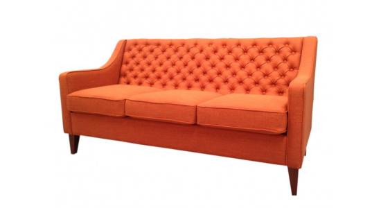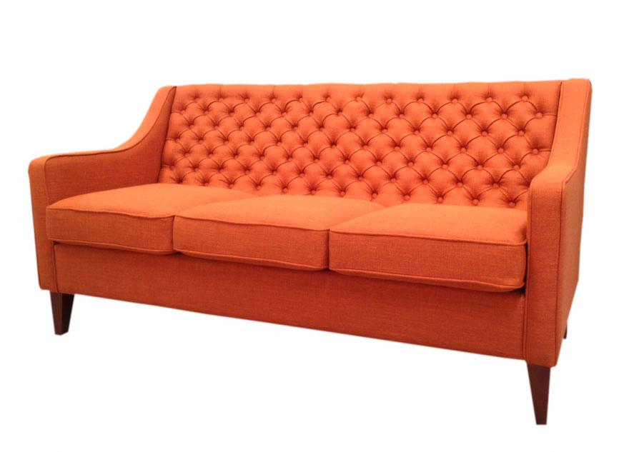 Sofá en tela Naranja con botones incrustados en el espaldar para darle un aire clásico.