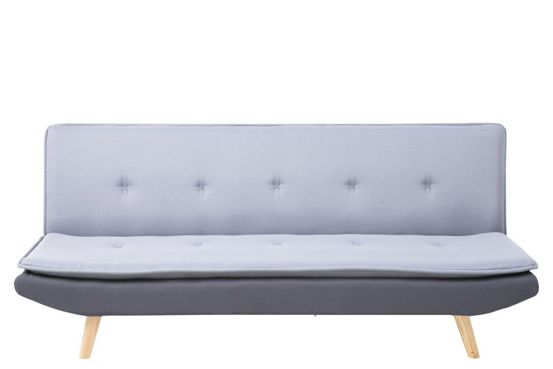 Sofá fabricado en tela lino color gris claro y oscuro, sus patas de madera, le dan un estilo casual, ideal para uso en espacios , combinándolo con paredes de diferentes colores.